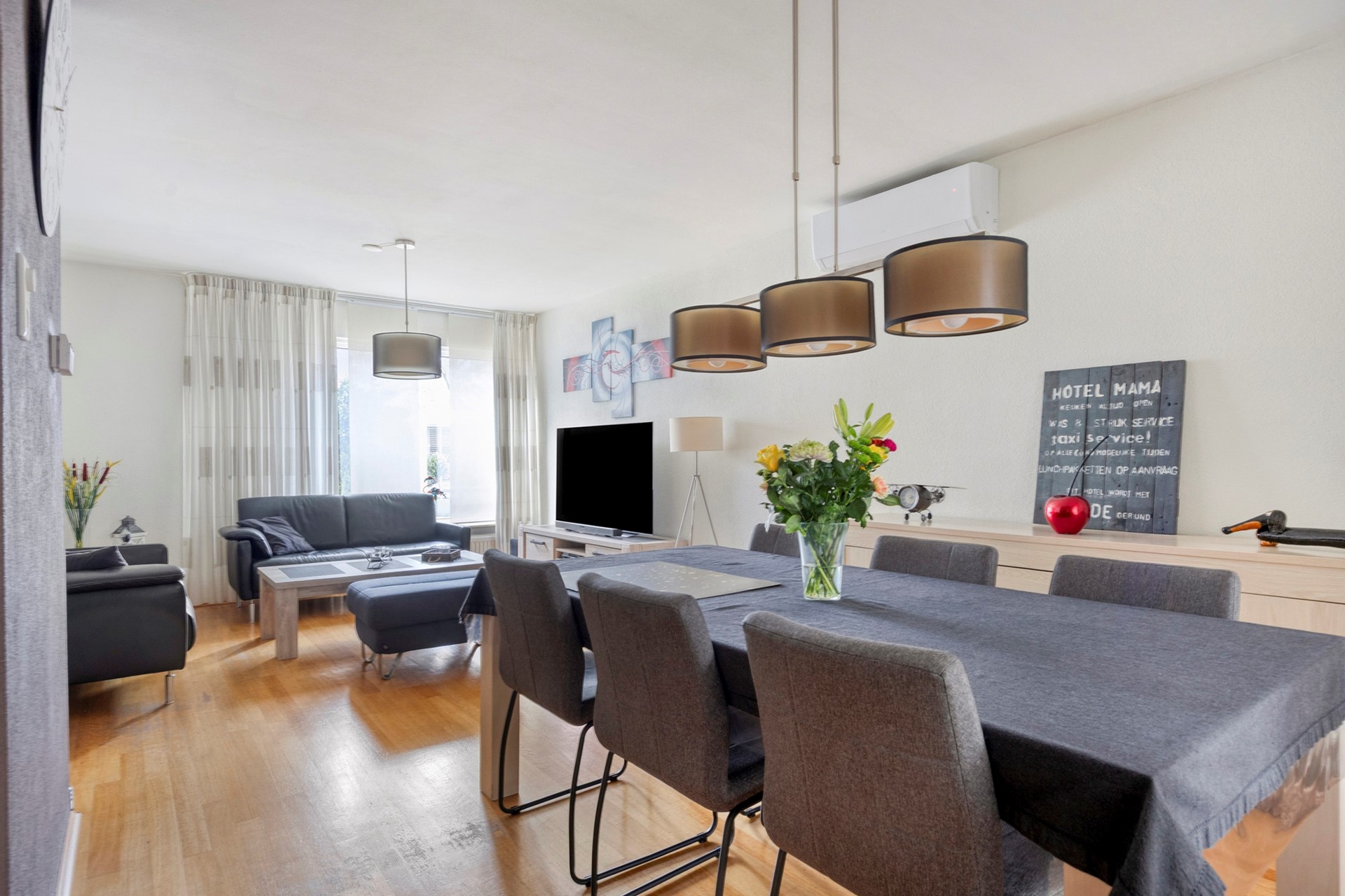 De woonkamer vormt het hart van het huis en straalt veel ruimte en licht uit. De grote raampartijen laten veel daglicht binnen, waardoor zowel het zitgedeelte als de eethoek een warme en uitnodigende sfeer ademen. De open indeling zorgt voor veel mogelijkheden om uw woonkamer in te richten. De aanwezige airconditioning zorgt hierbij voor extra comfort tijdens warme dagen.