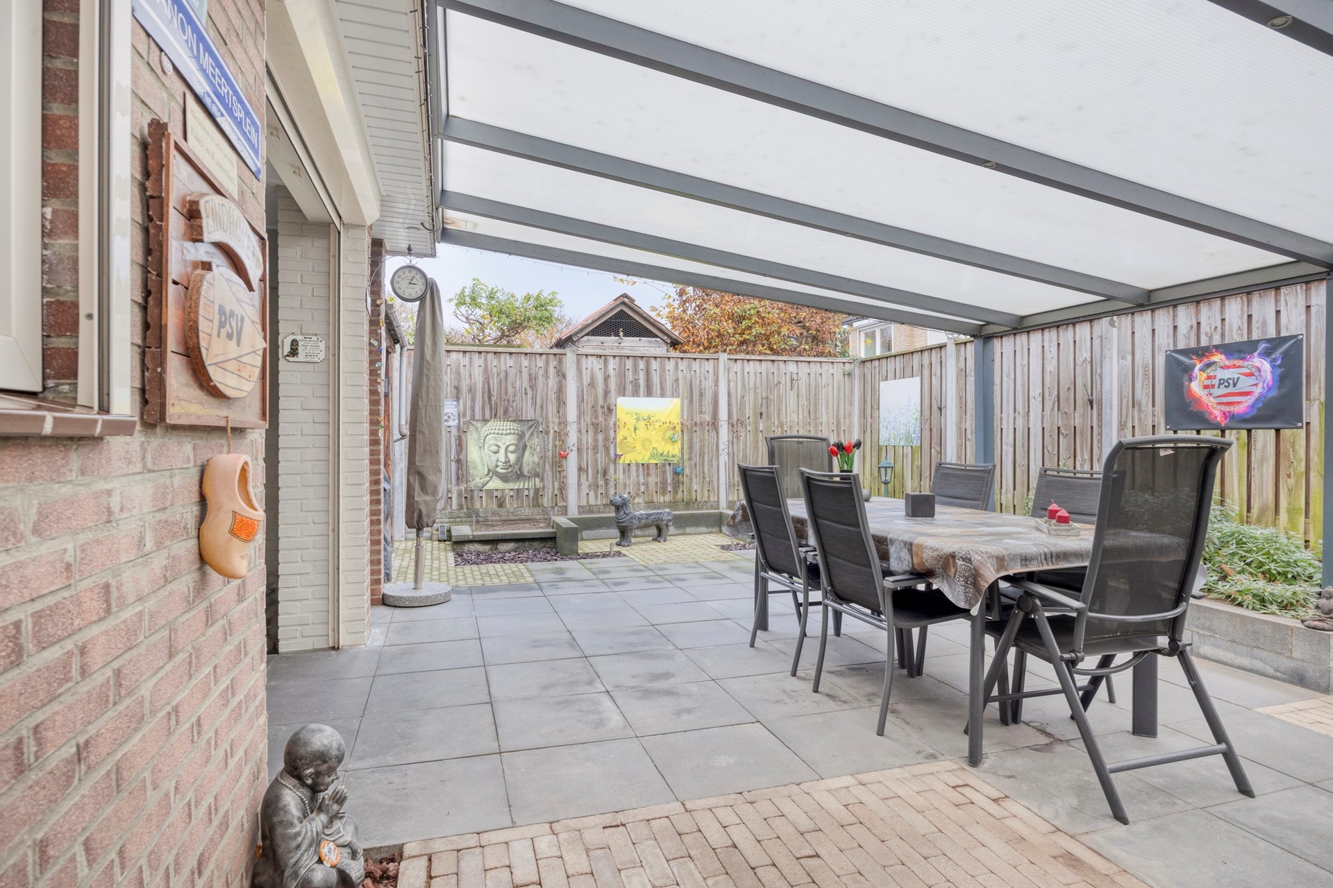 De achtertuin is verzorgd en onderhoudsarm aangelegd, met een ruime bestrating die ideaal is voor het plaatsen van een loungeset of eettafel. Dankzij de ligging geniet u hier van veel zonuren, terwijl de overkapping een fijne plek biedt om het hele jaar door buiten te zitten. De tuin vormt daarmee een heerlijke verlenging van de woonruimte.